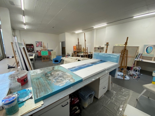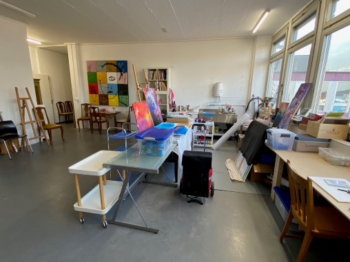 Auslöser für den Standortwechsel war die Kündigung des bisherigen Ateliers durch die Stadt per Ende November 2025. Die Suche nach einer geeigneten Alternative führte zu einer privaten Gewerbeliegenschaft, in der nun ein neues, langfristig nutzbares Gemeinschaftsatelier realisiert werden konnte. Das Atelier umfasst 14 Arbeitsplätze, die alle belegt sind, sowie einen grosszügigen Gemeinschaftsbereich. Dieser bietet Raum für gemeinsames Arbeiten, Austausch und Kurse.